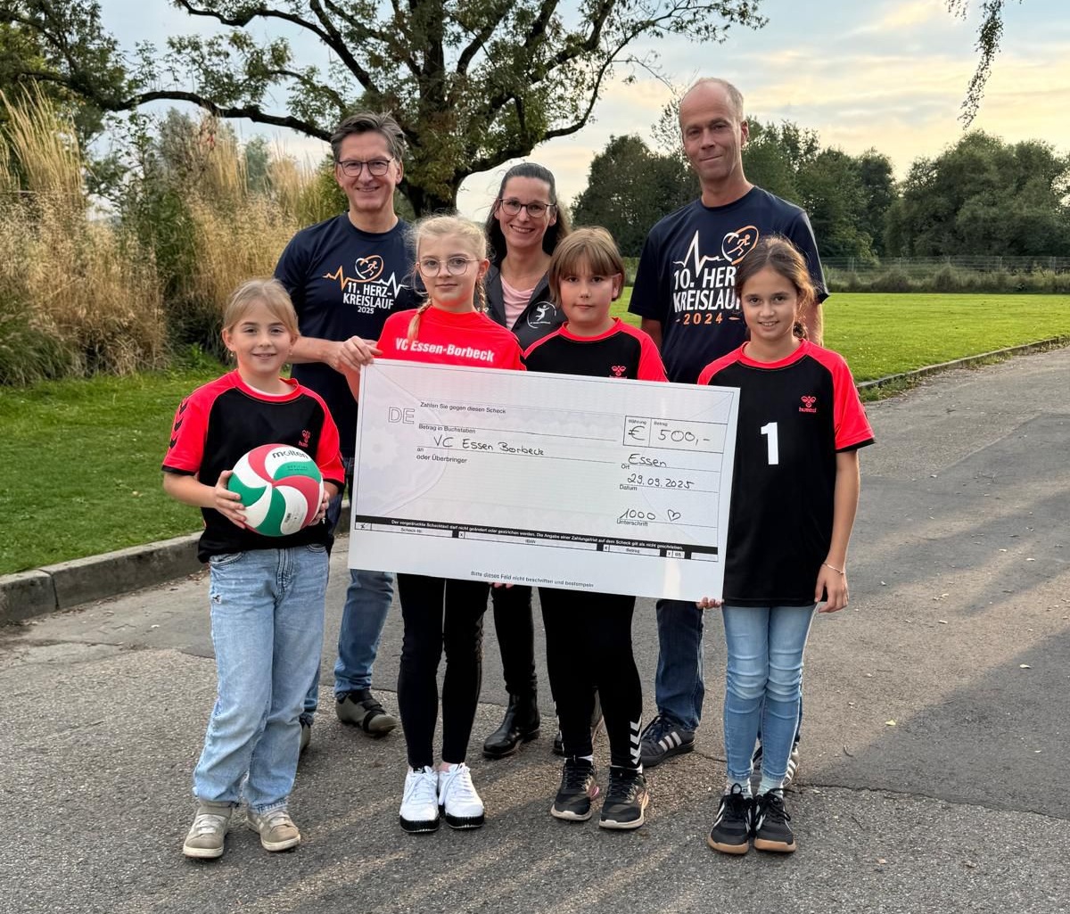 souveränen Siegen in allen Spielen. Zwei Wochen später, am 29. September, wurden die Mädchen vom Contilia Elisabeth-Krankenhaus Essen im Rahmen des „1000-Herzen“-Projekts zur Scheckübergabe